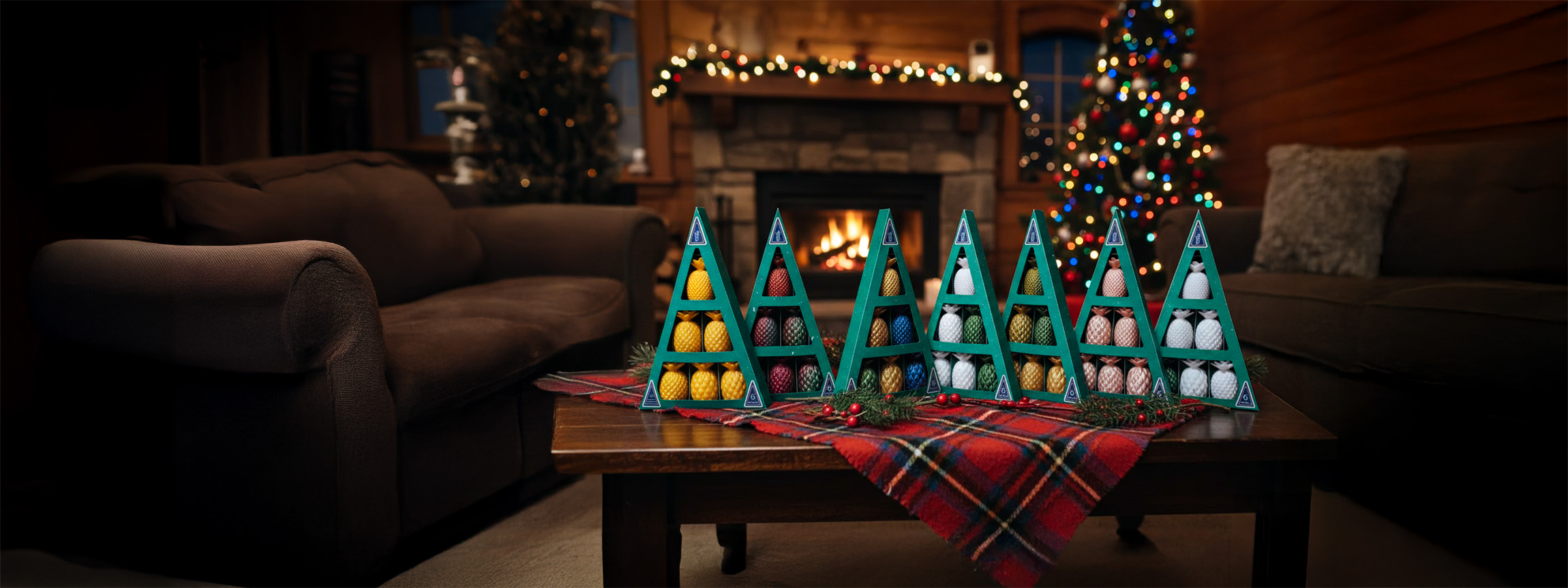 Decora tu arbolito con nuestro nuevo set exclusivo de adornos con formas de ananás con acabados únicos metalizados, brillantes, multicolor y ¡mucho más!
